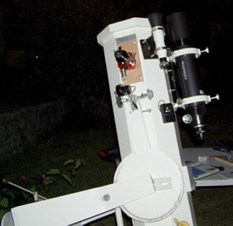 Il ne me restait plus qu'à trouver la monture. Les premiers essais sur pied photos ne m'ont pas satisfait, surtout avec la binoculaire. Je la voulais légère, mais rigide, avec des mouvements doux, équilibrée, démontable pour le transport. Je suis trés satisfait du résultat. La stabilité est excellente même avec la bino et je prends beaucoup de plaisir avec cette lunette qui complète trés bien mon Newton 200.