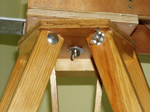 Le dessous de la table : une rondelle, un morceau de teflon et un ecrou papillon |