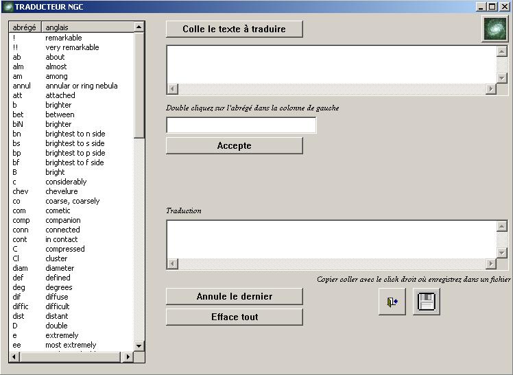 Utilisateur de la base SAC, je suis souvent confronté aux abréviations en anglais du catalogue NGC du genre :
